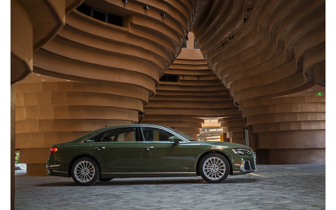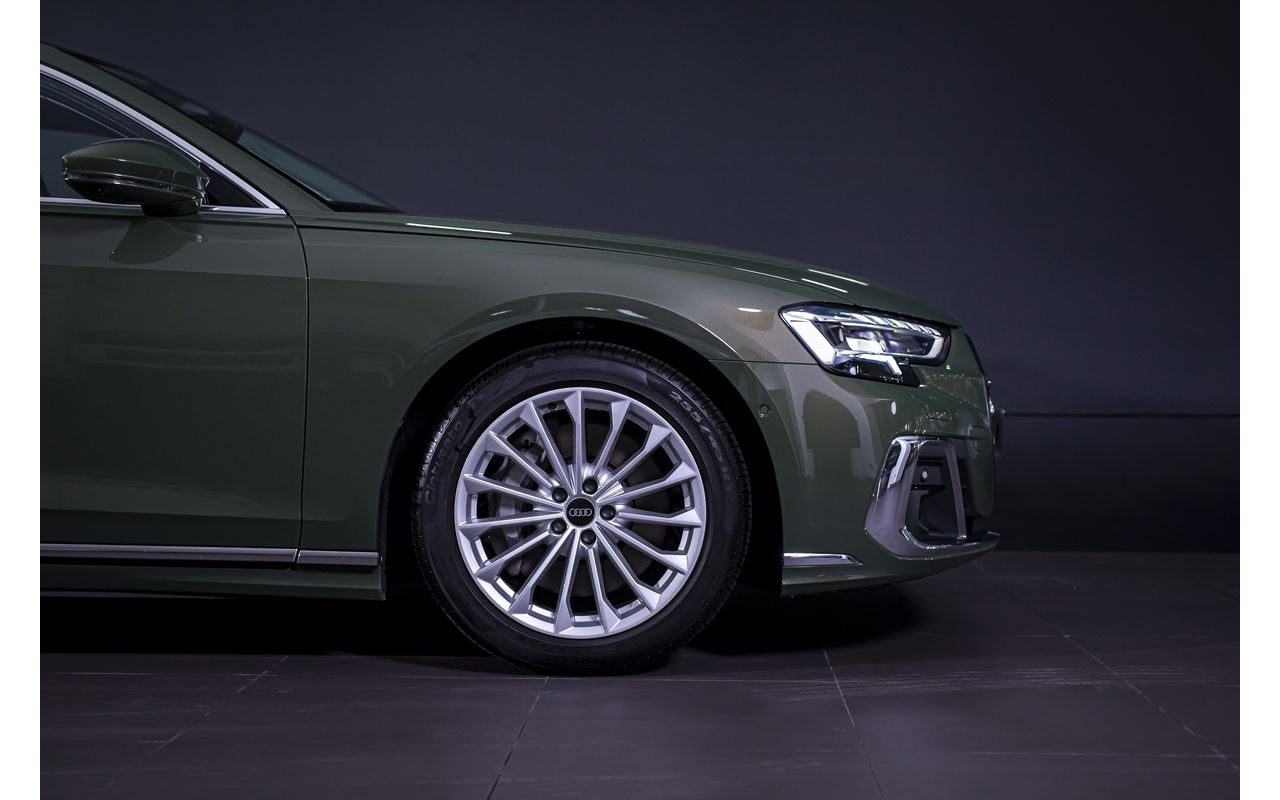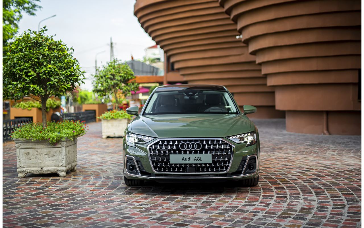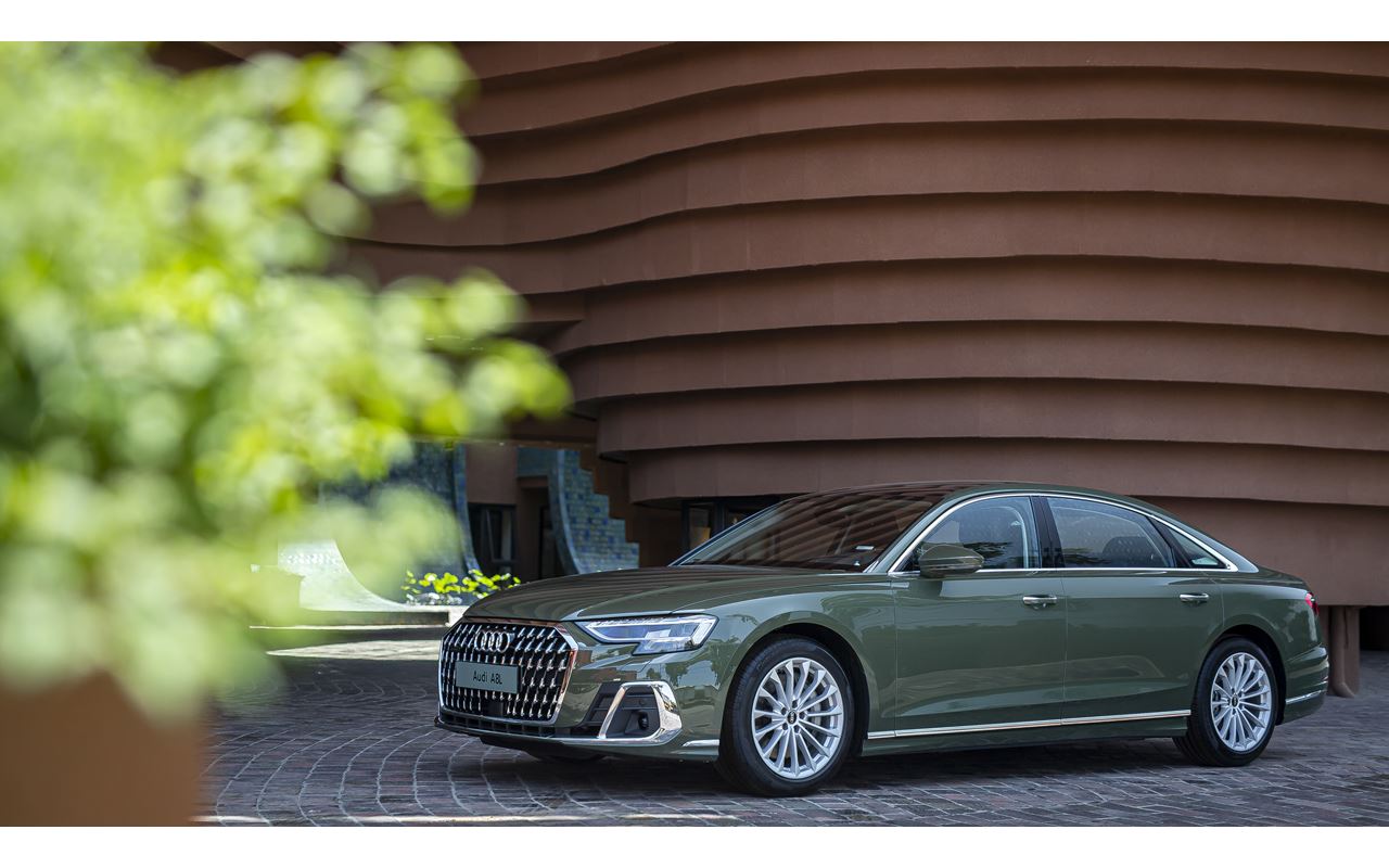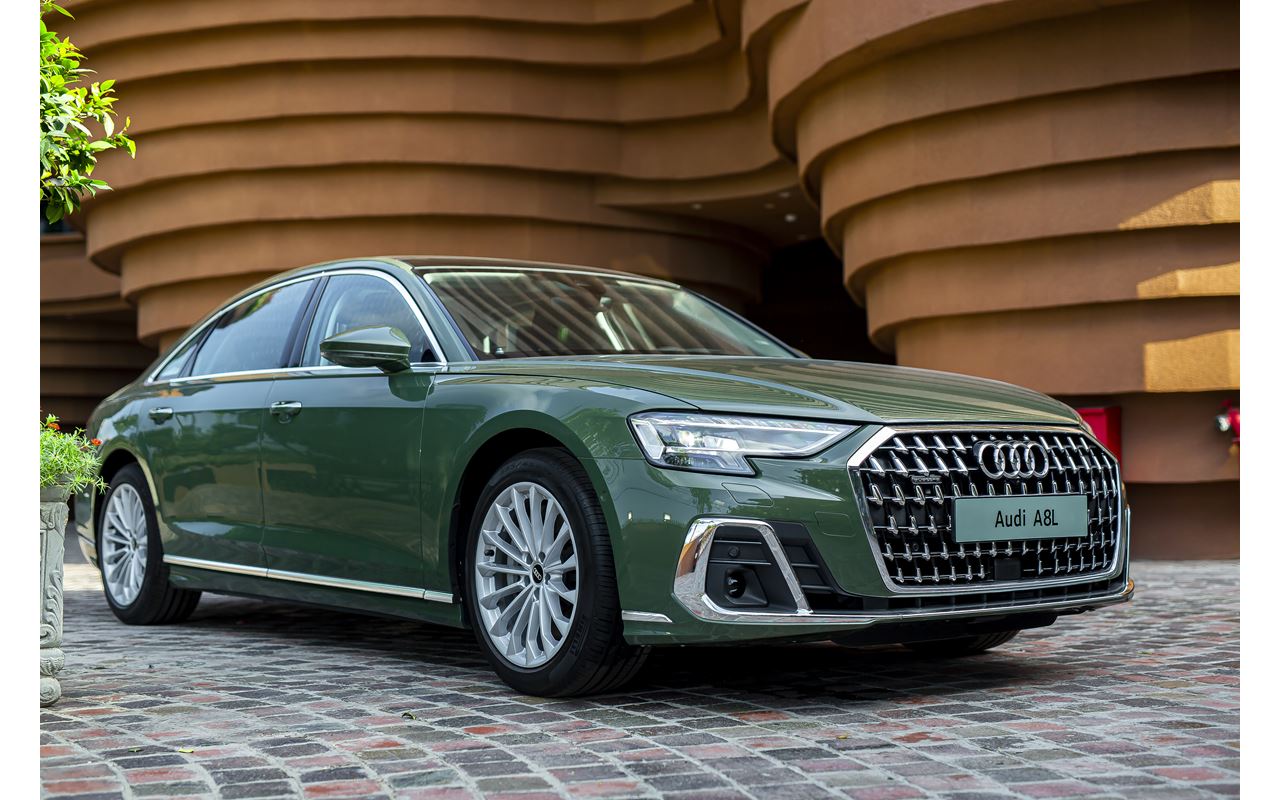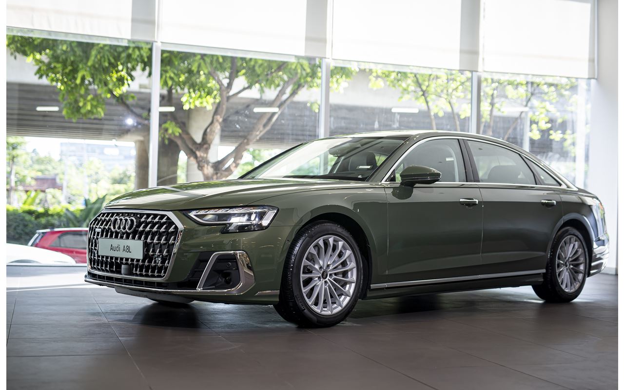 Audi A8L có 8 màu: xanh District, xanh Firmament, bạc Floret, trắng Glacier, xám Manhattan, đen Mythos, xám Terra Grey hoặc xám Vesuvius.